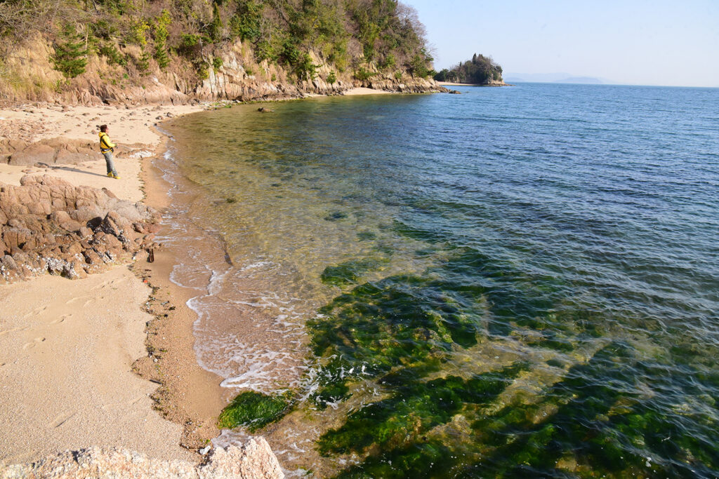 手前が浅くて沖に藻場や沈み岩が点在するサーフはメバルが釣れる場所だが飛距離が必須