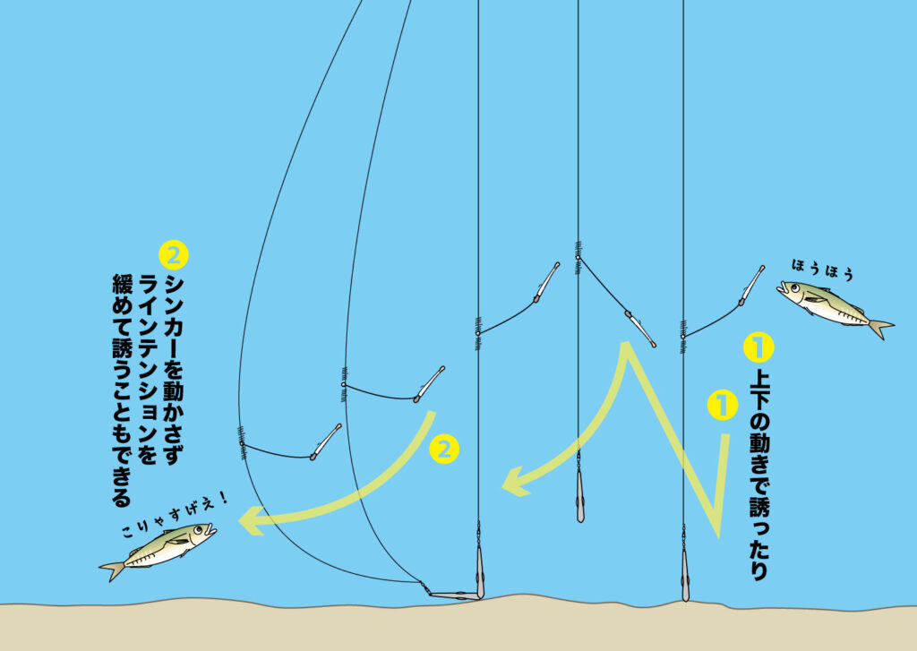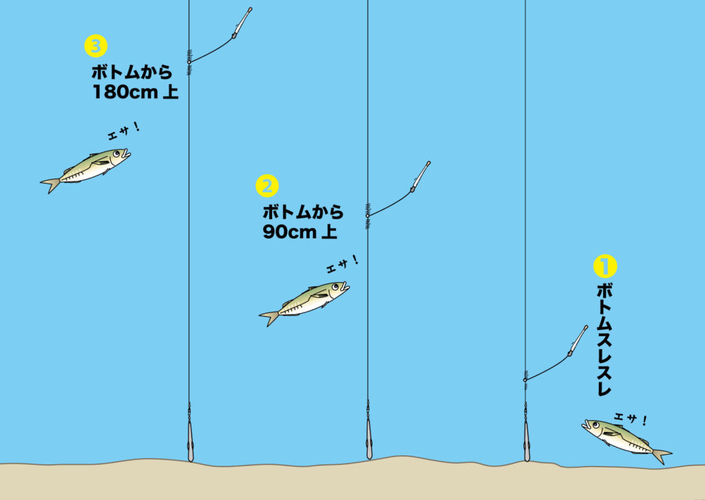 たとえば水深が深い場所で、ボトム付近でしかアジが食わないケースがあります。