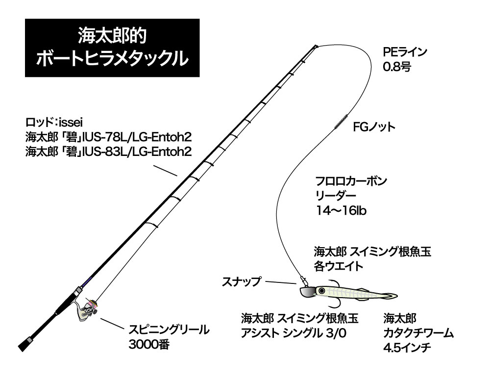ロッドは『海太郎 「碧」IUS-78L/LG-Entoh2』または『海太郎 「碧」IUS-83L/LG-Entoh2』。