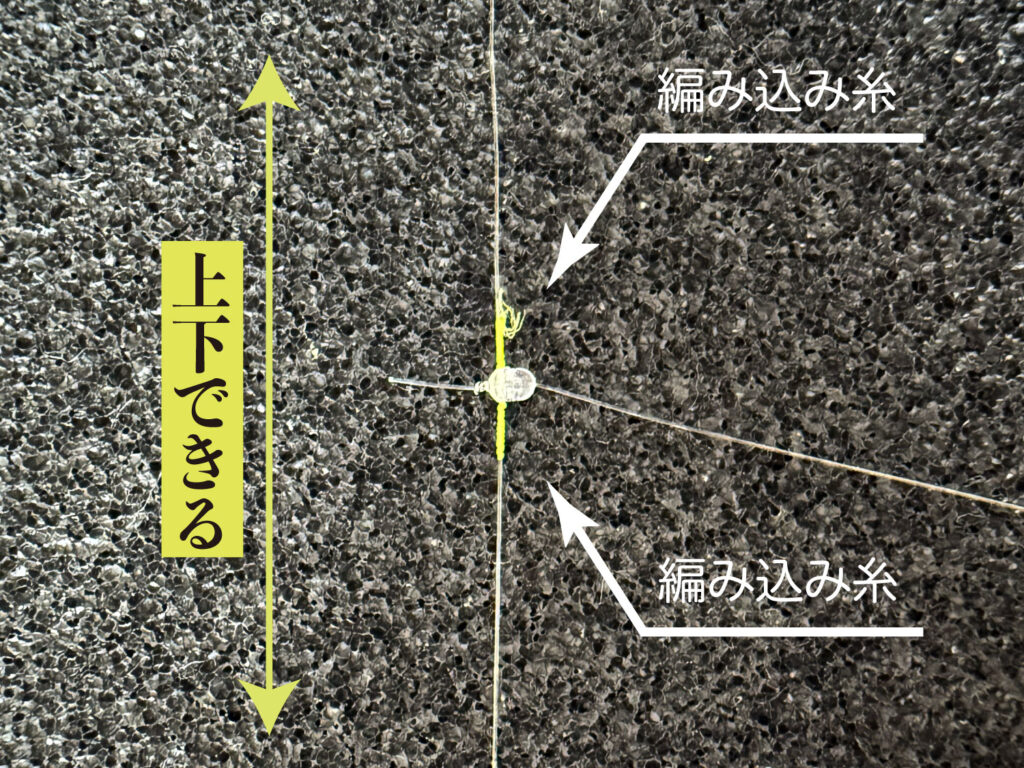 これは独自の編み込みで、湿らせて指でつまんで上下へのスライドが可能です。